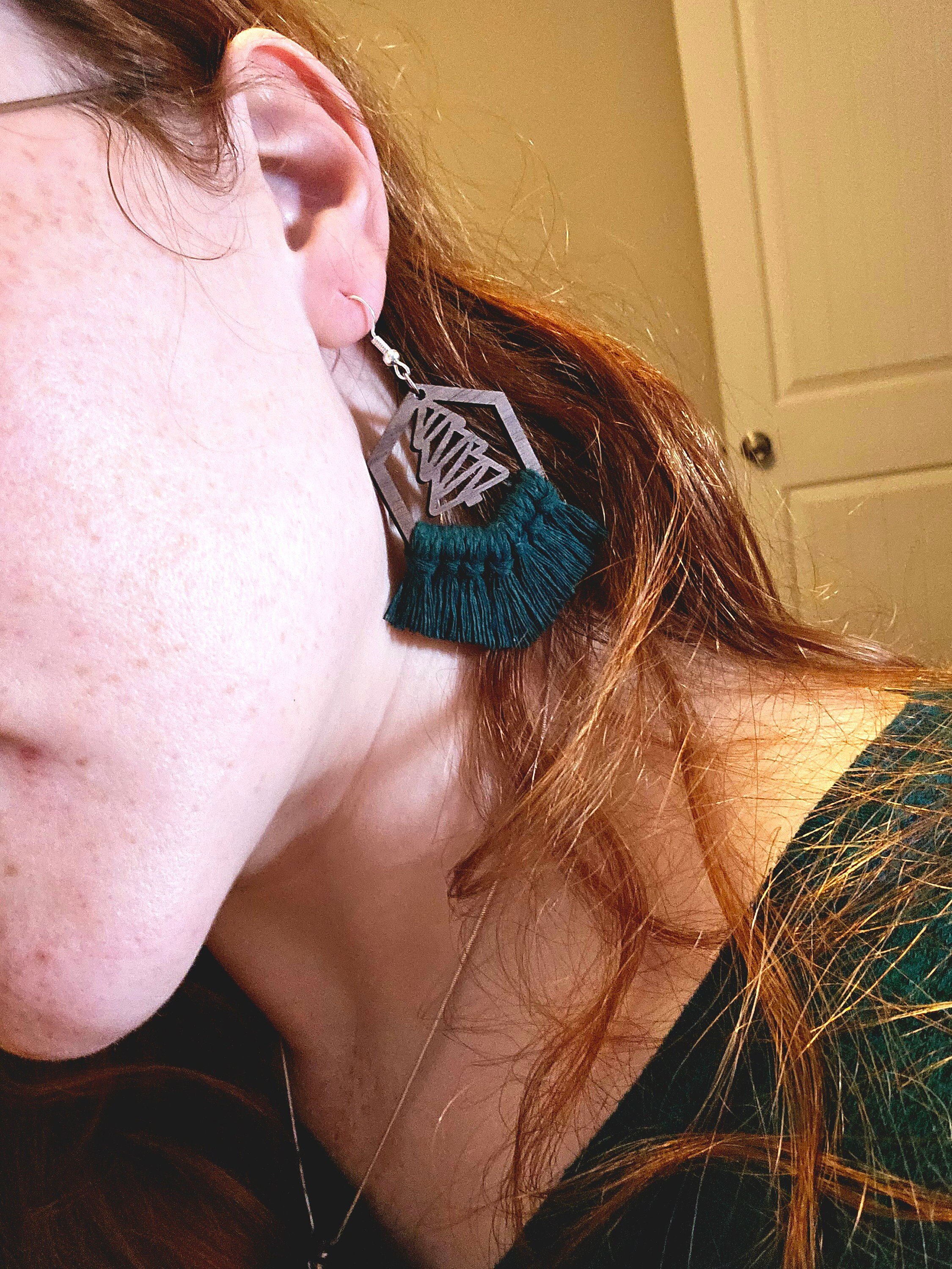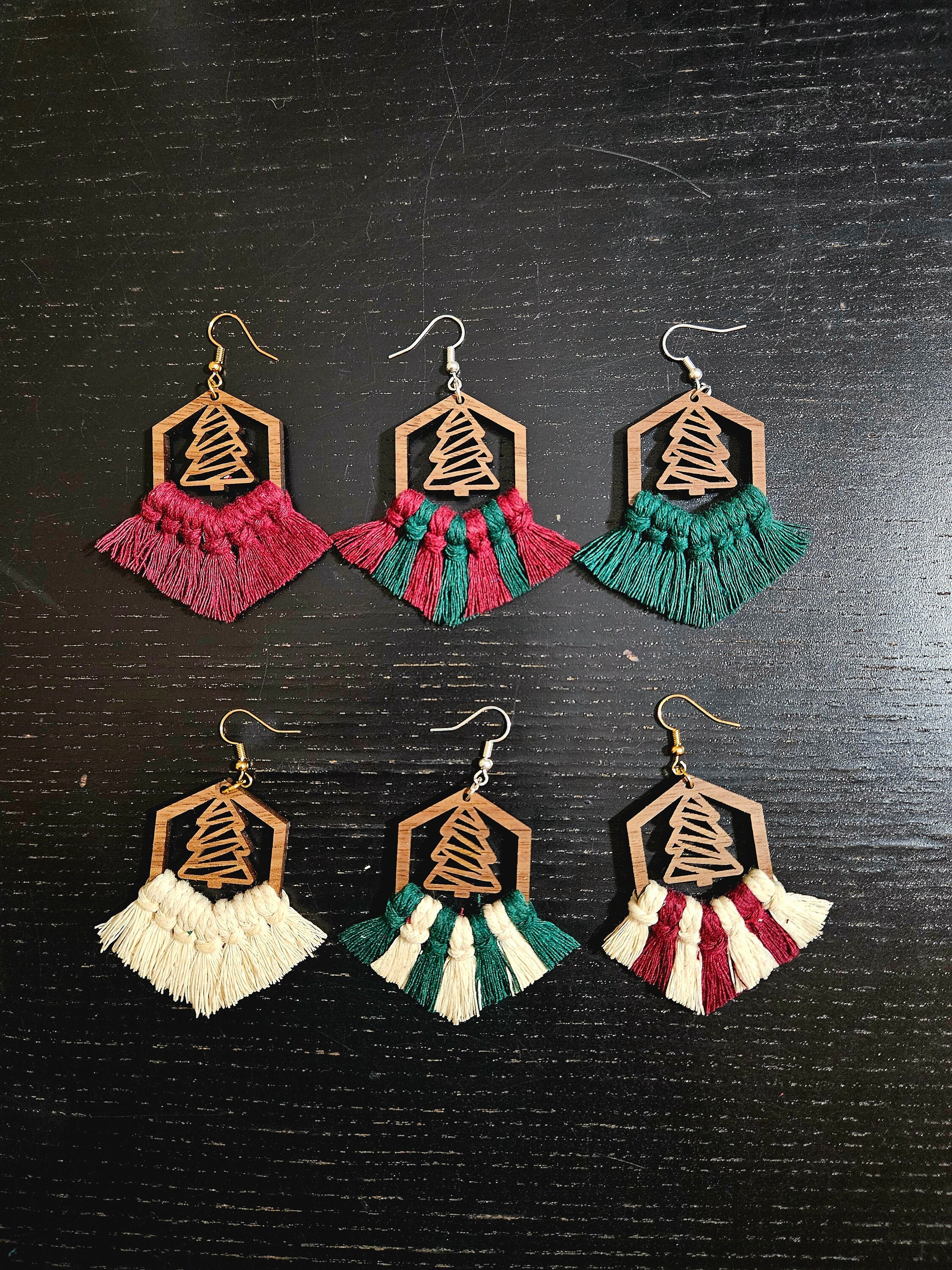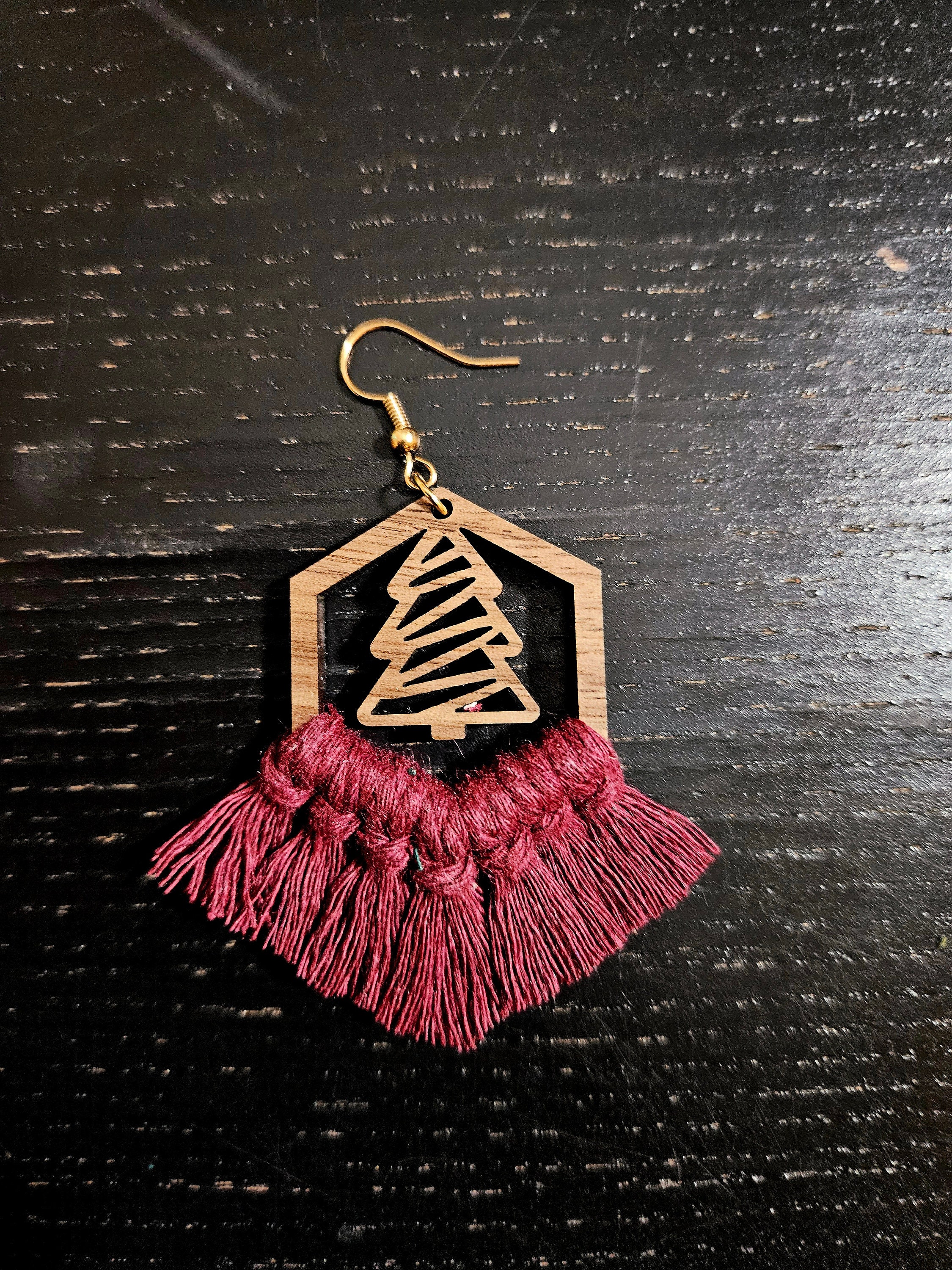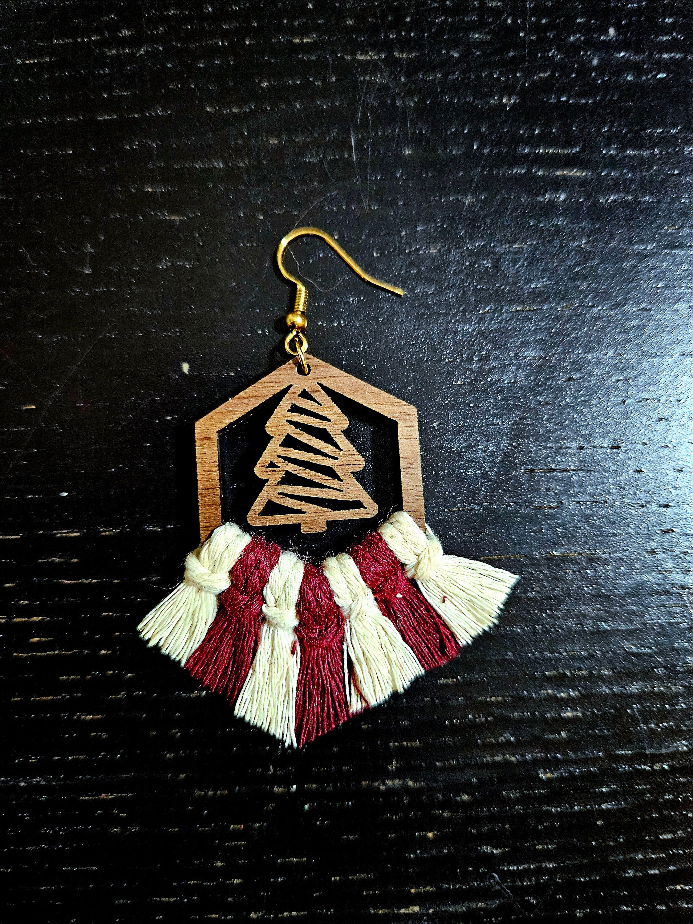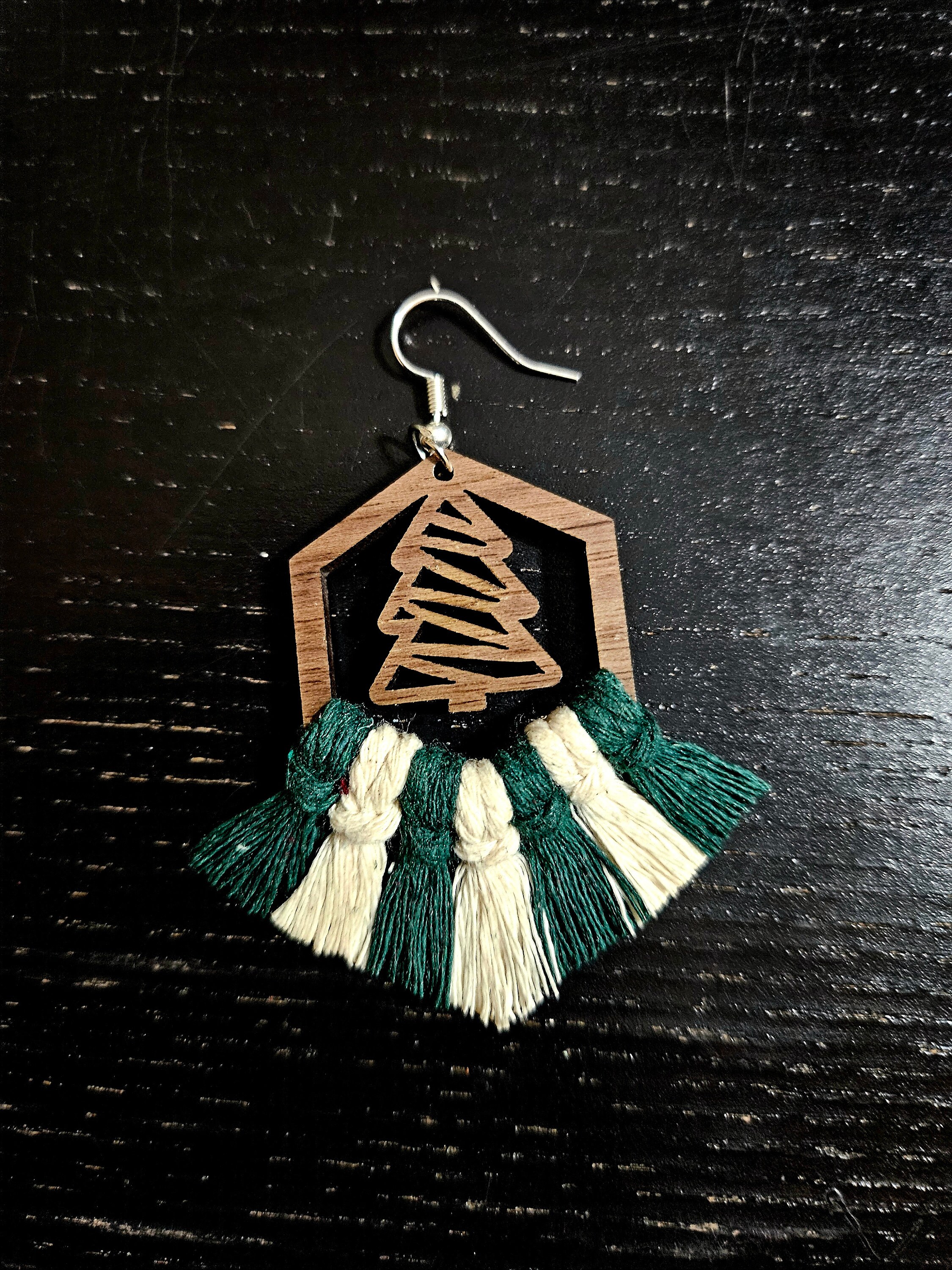 Introducing my Wooden Macramé Christmas Tree Holiday Earrings, a harmonious blend of rustic charm and festive sophistication. Carefully crafted with 100% cotton macramé cord, these earrings showcase a delightful Christmas tree design cut from real walnut wood. The rich, natural tones of the walnut wood complement the neutral elegance of the macramé, creating a unique and eye-catching accessory. Lightweight and comfortable for extended wear, these earrings are the perfect way to add a touch of artisanal craftsmanship and holiday spirit to your ensemble. Elevate your festive style with these one-of-a-kind earrings, celebrating the beauty of real wood and the joy of the season.