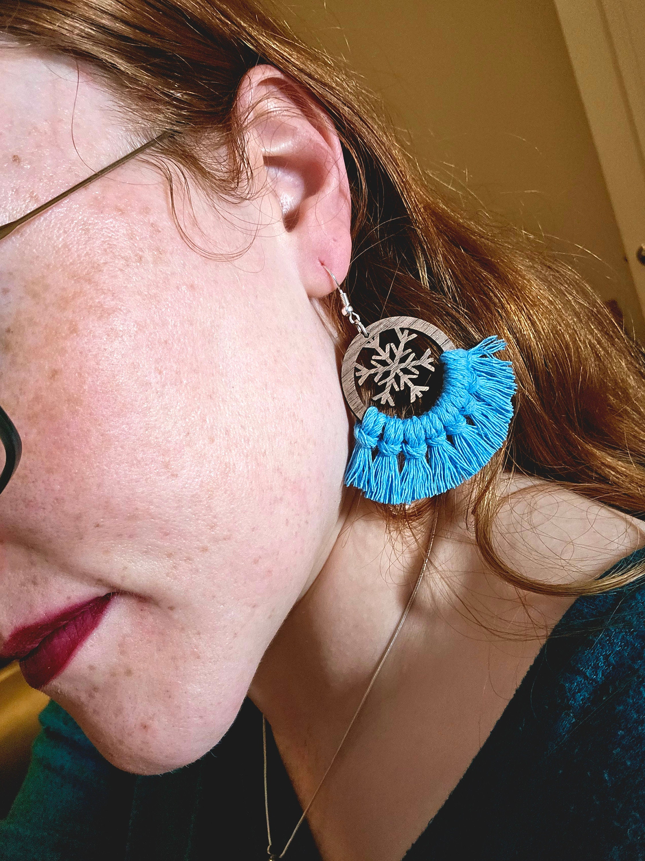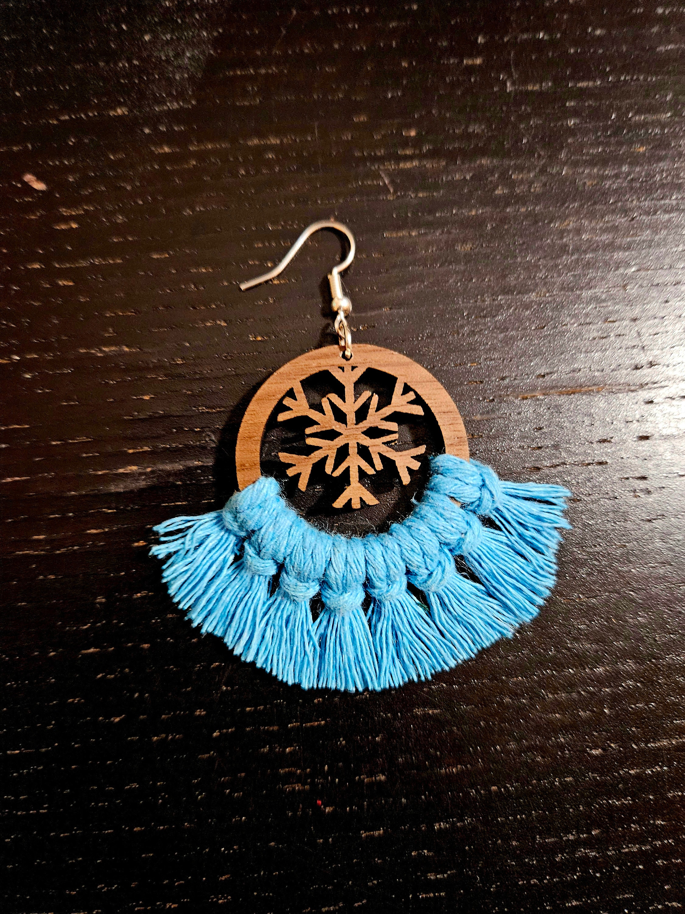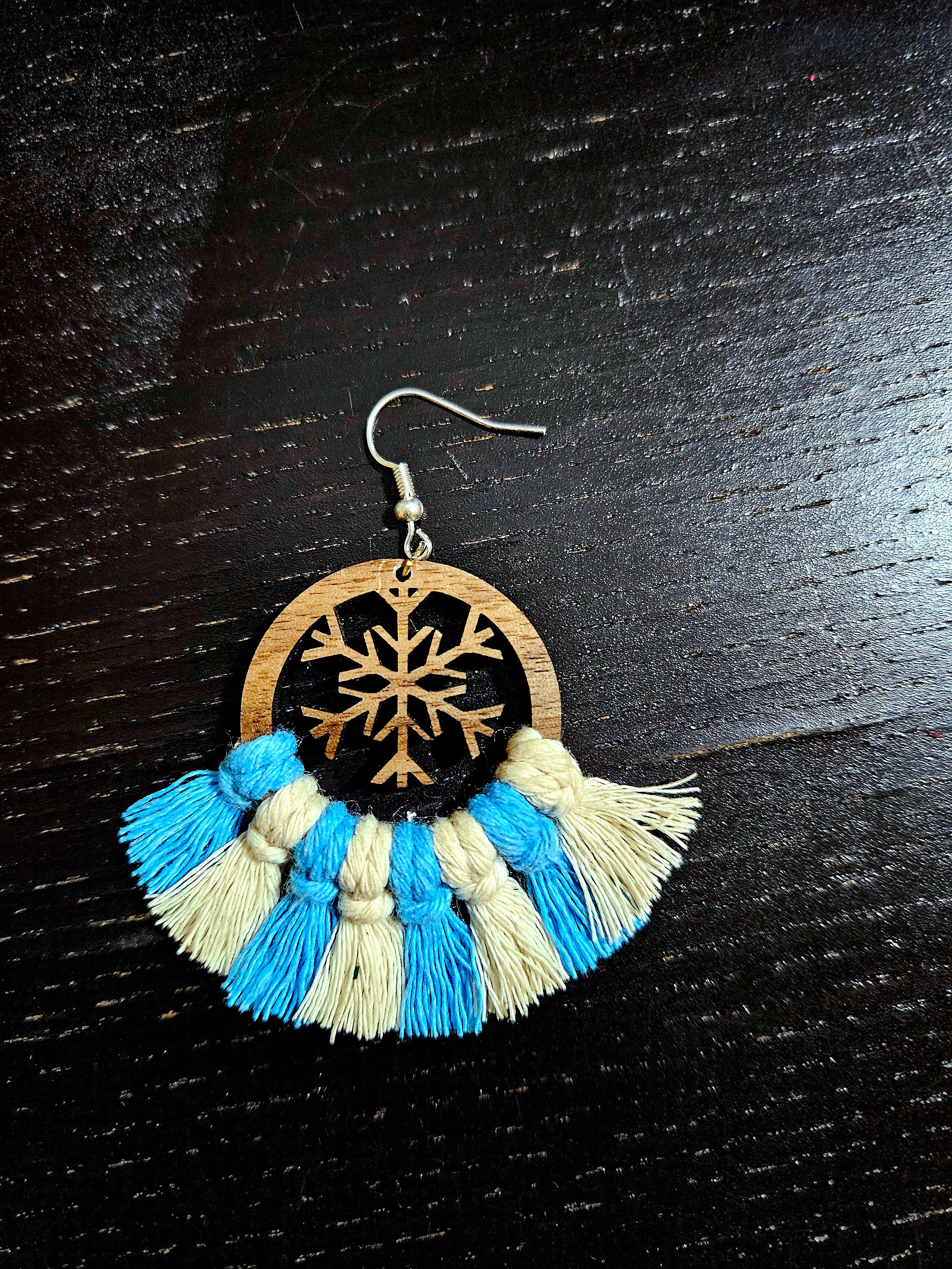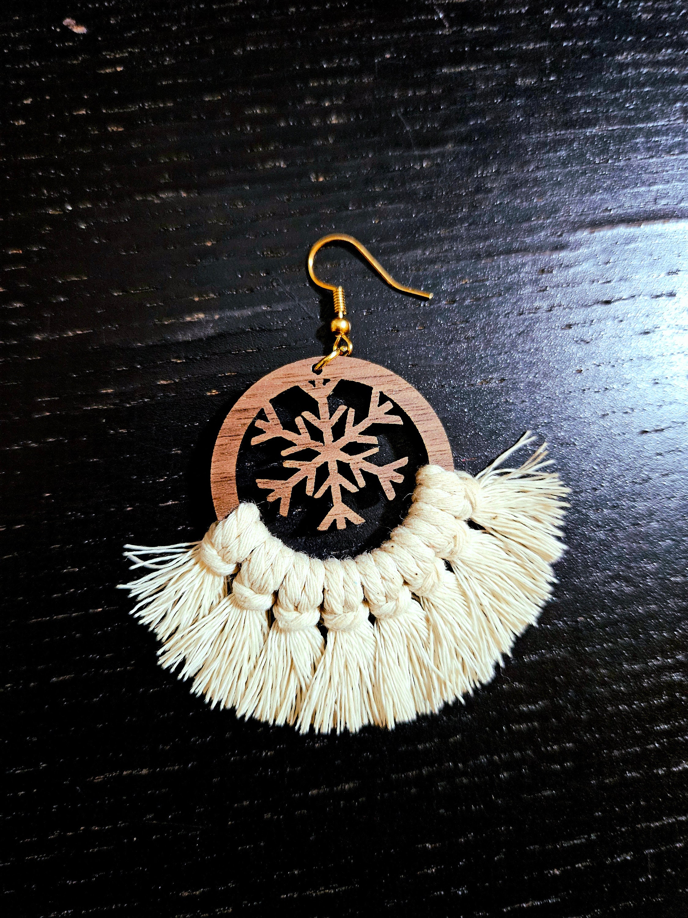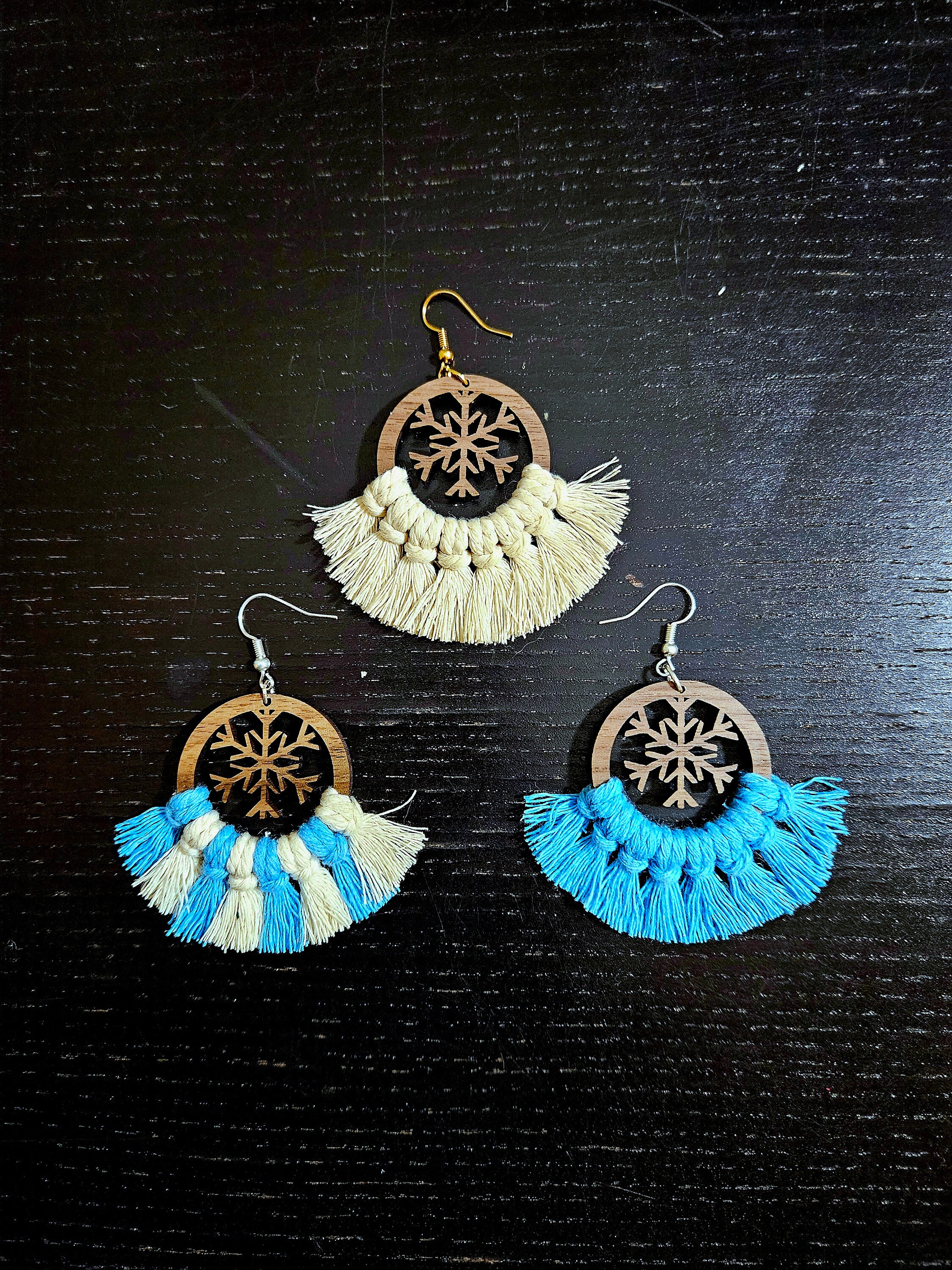 Indulge in the whimsy of winter with my Wooden Macramé Snowflake Earrings. Carefully crafted from real walnut wood, these earrings feature intricate snowflake cutouts that capture the enchanting essence of the season. The 100% cotton macramé cord adds a soft touch, making them the perfect accessory for a frosty, festive look. Let these earrings dangle like delicate snowflakes, adding a touch of natural elegance to your winter ensemble. Embrace the magic of the season with this enchanting and handcrafted accessory.