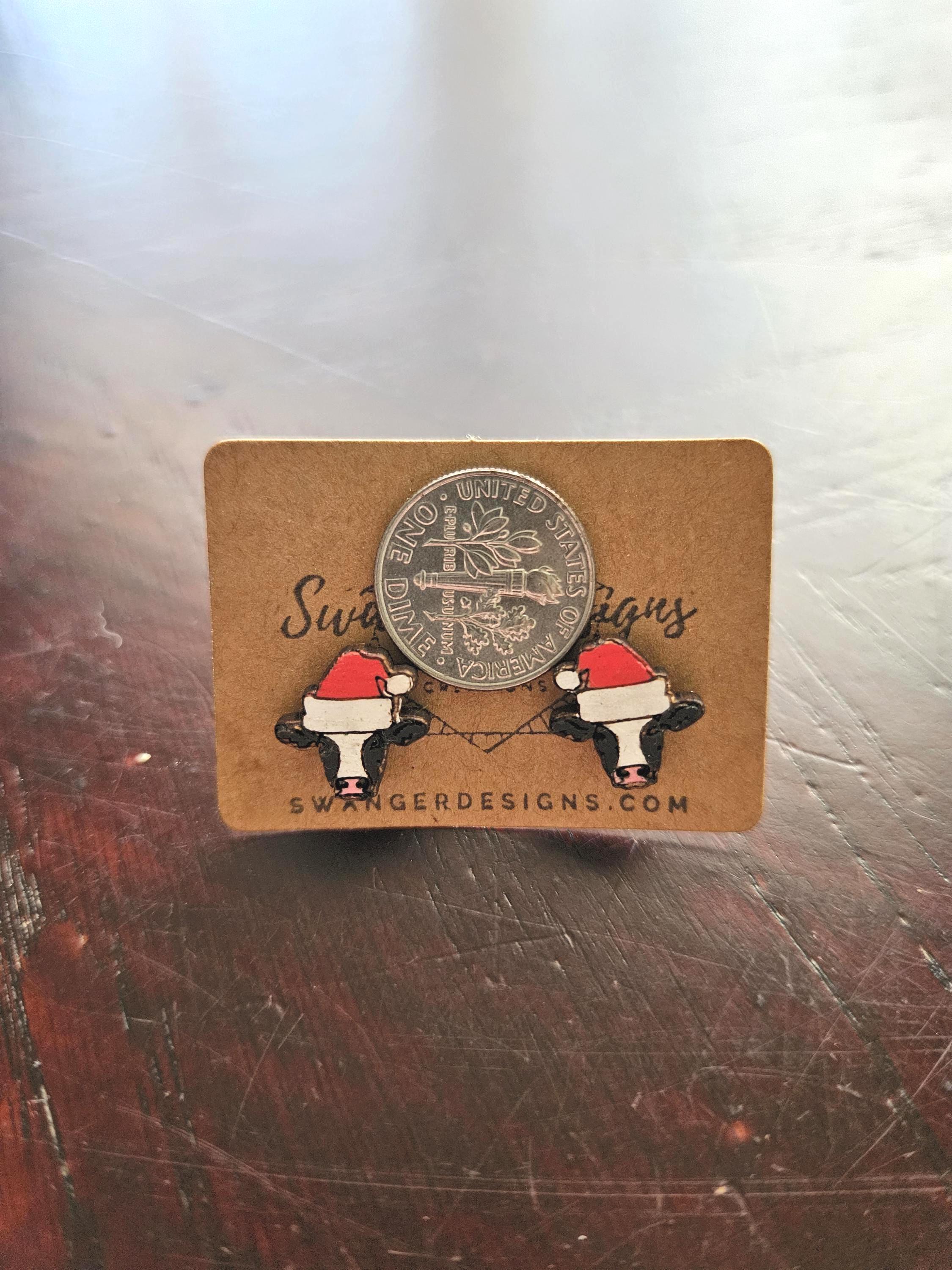 Spread some holiday cheer with these playful cow-in-a-hat studs — they make a memorable little gift!